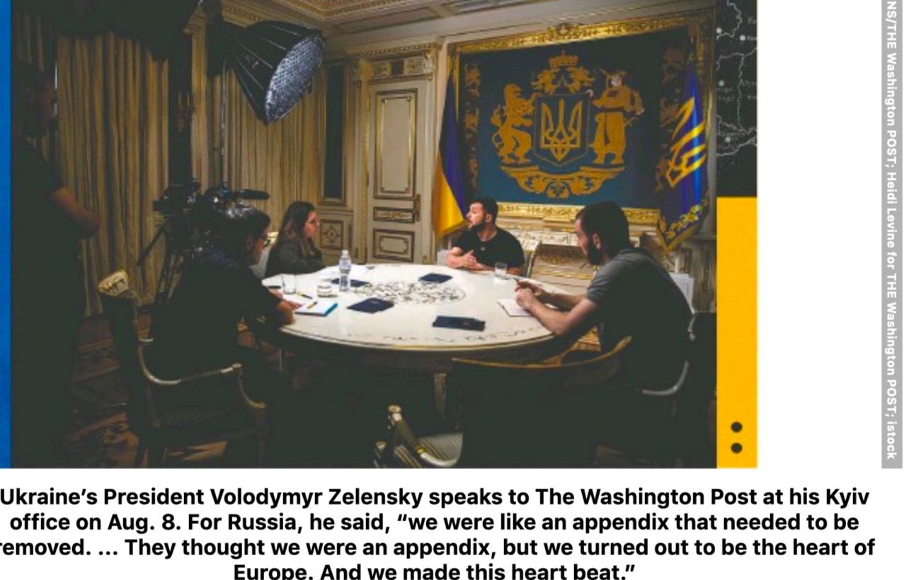 Президент України Володимир Зеленський розмовляв із The Washington Post у своєму київському офісі 8 серпня.