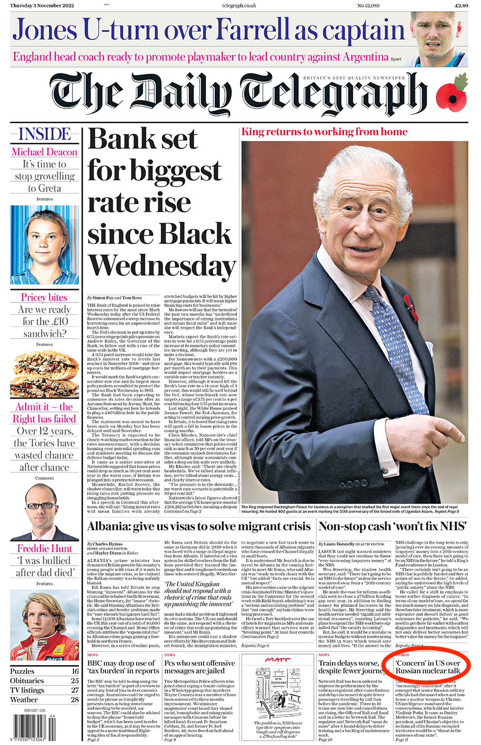 Велика Британія «The Daily Telegraph» - «У США «стурбовані» російськими ядерними розмовами»