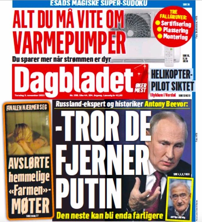Норвегія «Dagbladet» - «Думаю, Путіна змінять. Наступний може бути ще небезпечнішим»
